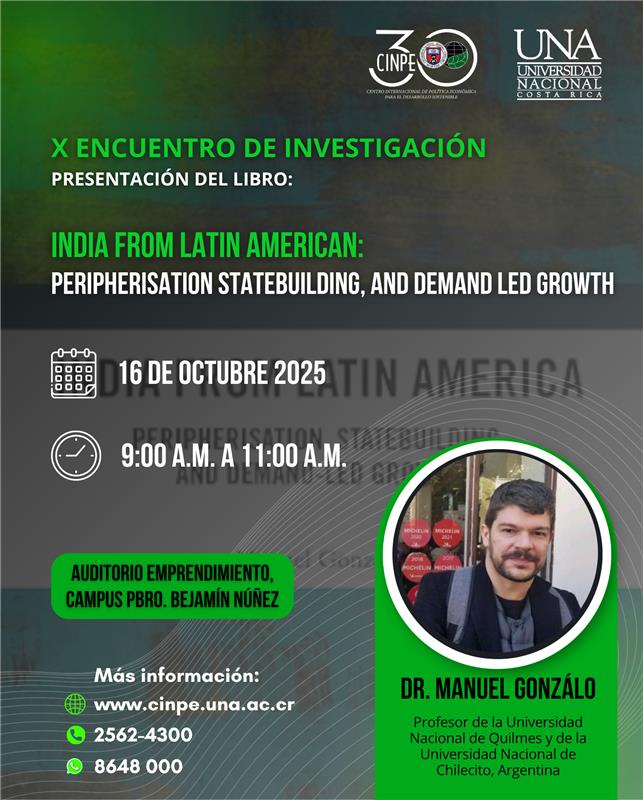 La Dirección General, Dirección de Investigación y la Coordinación de Docencia del CINPE, les invitan al X Encuentro de Investigación, denominado: India from Latin America, Peripherisation, Statebuilding, and Demand-Led Growth